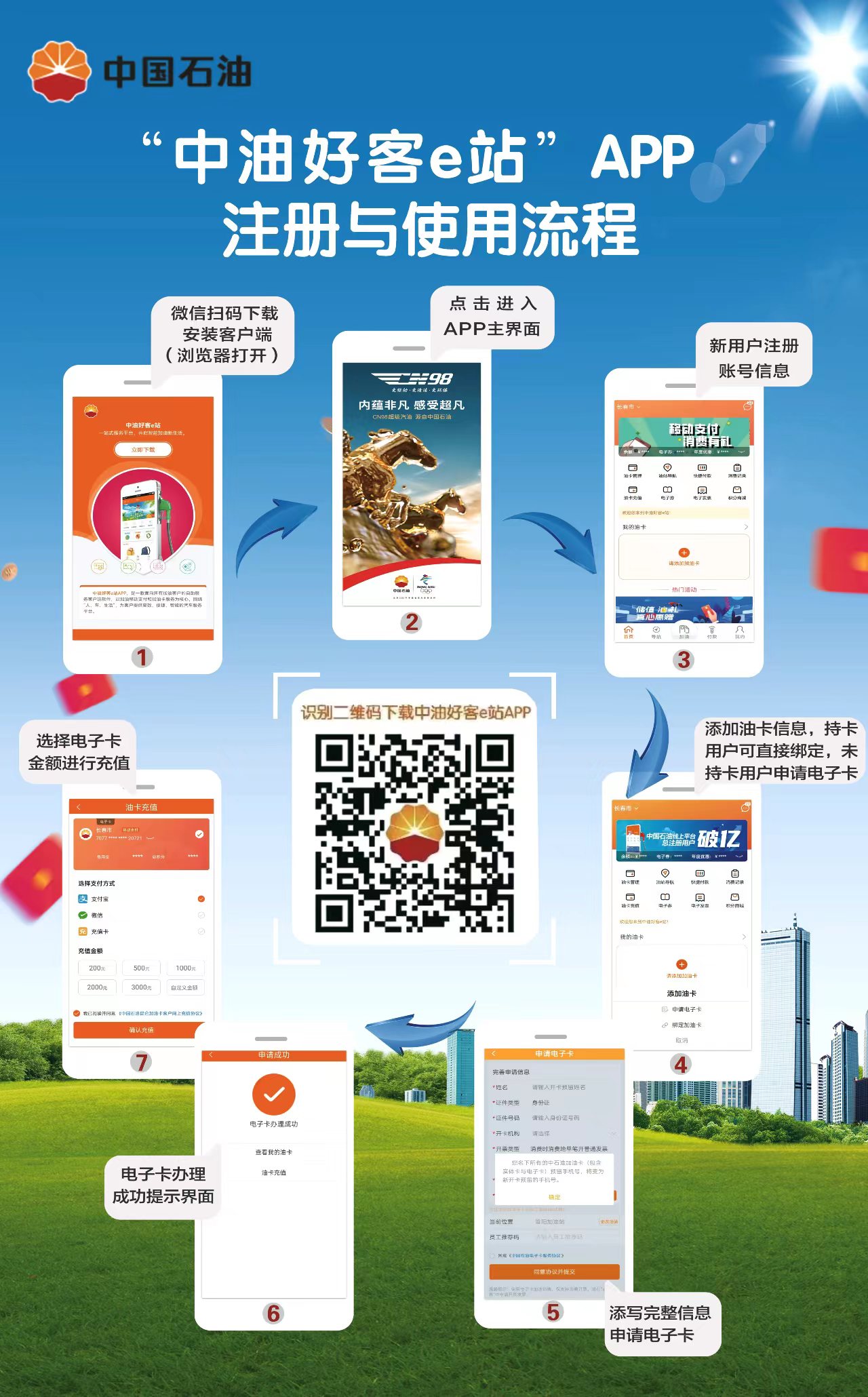 1. 下载“中油好客e站”APP并参照如下流程注册。