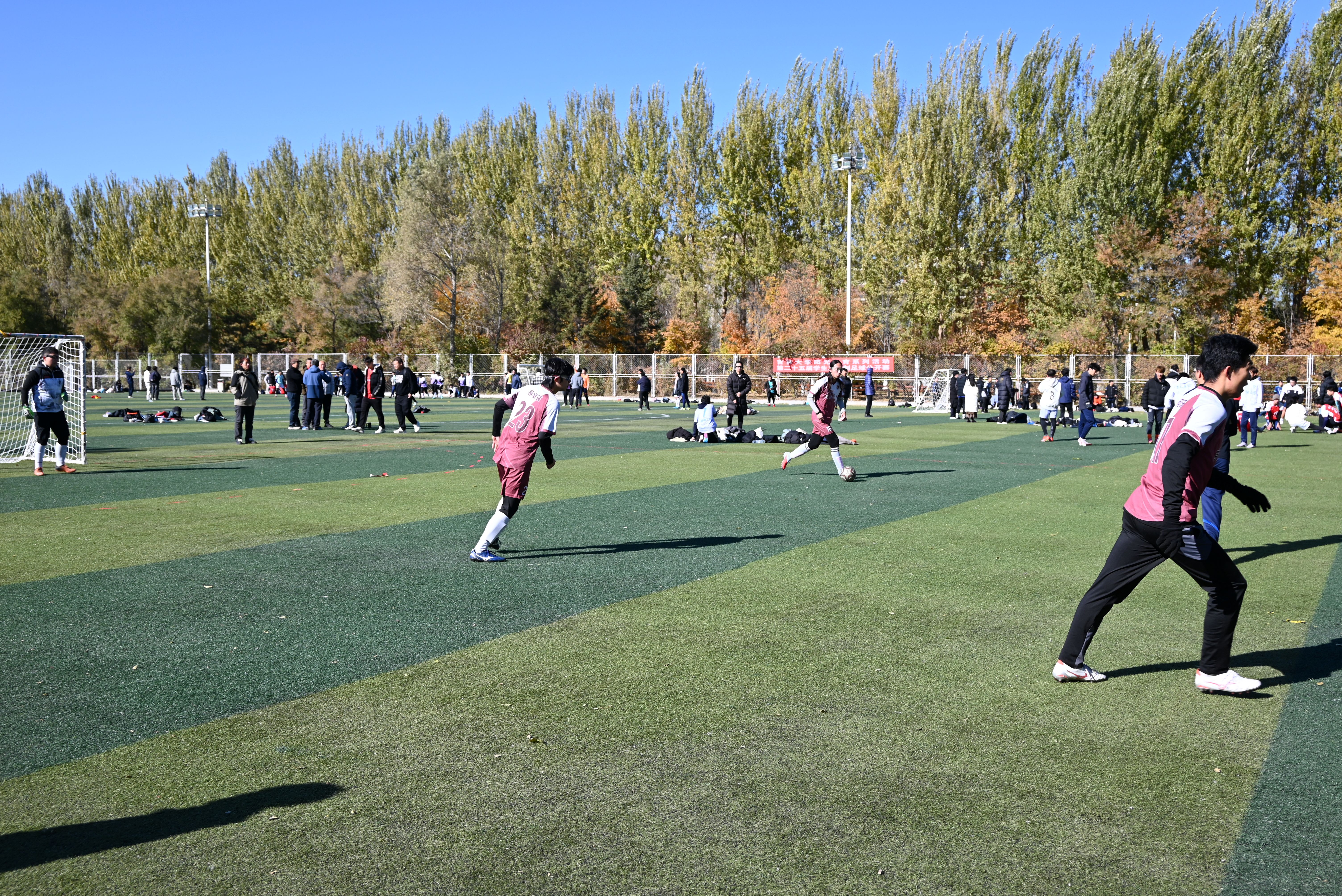 足球队员们的昂扬斗志,他们以坚韧顽强的身姿,在这片赛场上留下动人的身影。