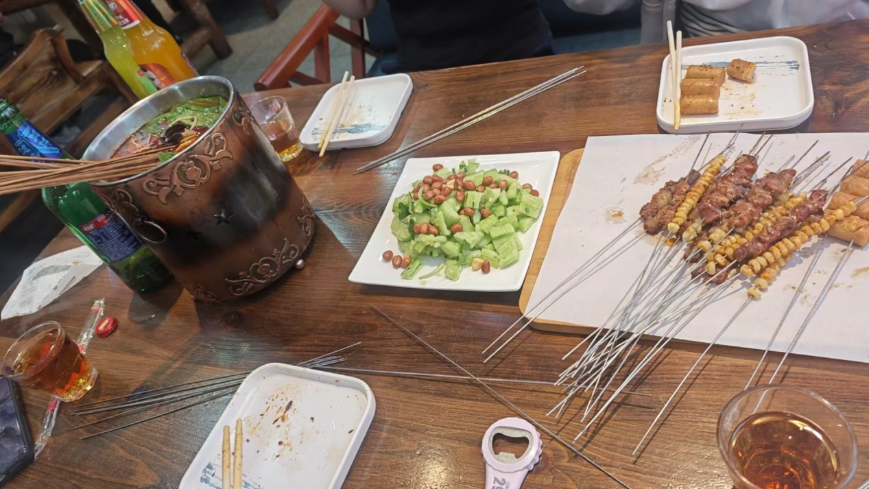 远离家乡在外求学,难免有愁绪侵袭,此时来一顿好吃的,填满了胃也安了心。